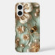 3D Fondant Style Celadon and Gold Flowers and Bumblebees Coquette Girly Classy Elegant iPhone case.