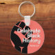 Modern Celebrate Black History Month keychain in coral, black and white, which would make an ideal accessory, whether you celebrate Black History Month (BHM) in February (US, Canada) or in October (UK, Ireland, Netherlands). Message reads "Celebrate Black History." Scripture verse is 1 Peter 2:9, which reads: 'But you are a chosen generation, a royal priesthood, a holy nation, His own special people'. All text is fully CUSTOMIZABLE, so you can personalise with your own text. Matching BHM items available. Choose from a wide selection of Black History Month designs on cards, invitations, clothing, home decor, party supplies and gifts, designed by Berean Designs so you can celebrate African American Caribbean pride in style.