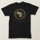 Embrace the spirit of Kwanzaa with our stunning T-shirt, featuring a regal gold Africa silhouette at its centre. This elegant design is surrounded by an opulent circular motif graphic print, showcasing an intricate interplay of gold, bronze, and copper hues. Perfect for those who appreciate bold patterns, this T-shirt is a tribute to African and diasporic cultures.