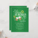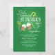 A stylish invitation for St. Patrick's Day. The kelly-green background features a golden horseshoe and shamrocks for luck, two mugs of frothy beer and the words "celebrate St. Patrick's day" which are preprinted. The perfect invitation for your celebration. (FP)