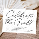 Modern graduation party invitations featuring "Celebrate the Grad!" displayed in a handwritten black script. Personalise the black and white graduation party invites with the graduate's name, graduation year, and party details. The invite reverses to display a solid black background with space for additional text or photos. The trendy graduation party invites are perfect for both high school and college graduates.