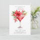 This Christmas cocktail party invitation is the perfect way to invite your friends and family to celebrate the holidays with cocktails. The design features a martini glass with poinsettia flower and holy berries, adding a festive touch to the invitation. The wording "let's celebrate the holidays with cocktails" sets the tone for a fun and festive party.