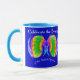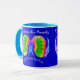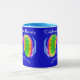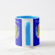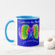 "Celebrate the beauty of the autistic spectrum" text with an abstract rainbow butterfly. Autistic pride mugs from autistart.com.