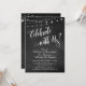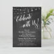 This sophisticated but rustic wedding reception card features a textured chalkboard background image overlaid with an image depicting strings of white twinkling light strings. I've used an elegant, swirling script font to render graphics depicting the words "Celebrate with Us!"; on the back I've placed the word "love". Your own text is easily added for customising this template as little or much as you wish. Use the template fields to simply enter your personal details, and click to customise further if you'd like to re-position any of the unlocked layers. There is a faint, opaque black overlay above the blackboard layer; remove it if you'd rather a lighter chalkboard background. Please do not hesitate to reach out to me for special requests or for assistance with customisation.