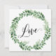 Using an elegant, swirling, modern script font, I've created a graphic overlay that reads "Celebrate with Us", to complement the sophisticated all-caps, serif font used for your details. The same "fancy font" was used to place the word "Love" on the back. The text is accented with a green watercolor wreath of leaves and herbs. All layers were added separately and left unlocked to give you significant design control; make whatever modifications needed to create the card you envision. If needed, you can rotate the wreath to better accommodate your wording. And please don't hesitate to reach out to me if you need customising assistance or have special requests. // 119 //