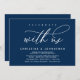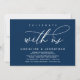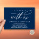 Announce and share your happily ever after in style with our modern navy blue theme design (Celebrate with us) wedding elopement celebration invitation card. It is ideal for couples who have decided to celebrate their best day. With its sophisticated yet playful design, this invitation is sure to set the tone for an unforgettable event. The invitation card features a modern and minimalist script design theme, adding a touch of timeless elegance to your celebration. Designed by TeeshaDerrick