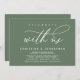 Announce and share your happily ever after in style with our modern forest sage green theme design (Celebrate with us) wedding elopement celebration invitation card. It is ideal for couples who have decided to celebrate their best day. With its sophisticated yet playful design, this invitation is sure to set the tone for an unforgettable event. The invitation card features a modern and minimalist script design theme, adding a touch of timeless elegance to your celebration. Designed by TeeshaDerrick