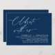 Mark the beginning of your forever with elegance using our romantic contemporary classy navy blue theme wedding elopement happily ever after lunch, brunch, reception dinner party celebration invitation card, "Celebrate with us". Perfect for couples extending their joyous occasion, this invitation exudes sophistication with a hint of playfulness, setting the stage for a memorable event. Adorned with a timeless modern script design theme, it adds a touch of refined charm to your festivities. Crafted by TeeshaDerrick, this invitation promises to beautifully capture your love story.
