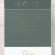 Elegant dark sage green elopement or private wedding announcement and reception all-in-one invitation featuring "Celebrate With Us" in a chic script and your marriage announcement and reception invitation in simple modern lettering, all rendered in your choice of genuine gold, silver or rose gold foil. A white tear-away RSVP postcard provides a convenient and envelope-free response option for your guests.