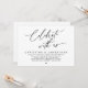 Mark the beginning of your forever with elegance using our romantic contemporary black and white themed wedding elopement happily ever after dinner party celebration invitation card, "Celebrate with us". Perfect for couples extending their joyous occasion, this invitation exudes sophistication with a hint of playfulness, setting the stage for a memorable event. Adorned with a timeless modern script design theme, it adds a touch of refined charm to your festivities. Crafted by TeeshaDerrick, this invitation promises to beautifully capture your love story.