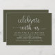 Mark the beginning of your forever with elegance using our contemporary beautiful olive green themed wedding elopement celebration invitation card, "Celebrate with us". Perfect for couples extending their joyous occasion, this invitation exudes sophistication with a hint of playfulness, setting the stage for a memorable event. Adorned with a timeless modern script design theme, it adds a touch of refined charm to your festivities. Crafted by TeeshaDerrick, this invitation promises to beautifully capture your love story.