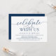 Modern romantic minimalist Simple Calligraphy Navy Blue Script, Wedding Elopement Dinner or Party invitation card (Celebrate with us). It is perfect for your wedding elopement announcement and party celebration, after your best day. Add your details in matching black font / lettering.
