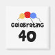 Three primary colours balloons and black text that reads "Celebrating 40" on 40th birthday cards, T-shirts, mugs, and more.