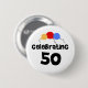Three primary colours balloons and black text that reads "Celebrating 50" on 50th birthday cards, T-shirts, mugs, and more.