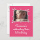 A cute photo greeting first birthday invitation featuring a hand illustrated frame, this adorable invitation will be sure to stand out in the mail stack! This invitation can be customised with your child's photo and party information.
