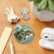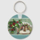 Vintage image of two kitties at a fancy dinner table on New Years Eve. Holly borders the edge of card.
