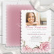 The design features a photo on top with a delicate arrangement of soft, watercolor pink Carnation floral on the bottom in soothing tones, evoking a sense of peace and remembrance. Pink carnations hold deep symbolism, making them a poignant and meaningful choice for a funeral invitation. They represent remembrance, gratitude, and enduring love, qualities that align beautifully with honouring the memory of a loved one.