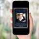 A dark blue background, a faux gold frame . Personalise and add a photo, name, dates and your text. White text.