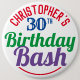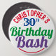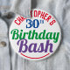 To celebrate a special birthday. Designed for someone who is 30 years of age. 30th birthday celebration. Birthday bash. Add the name and number. Birthday party button badge.