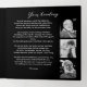 This elegant square funeral program template features a timeless black and white design that beautifully honours a life well-lived. The cover showcases a photo of your loved one, paired with graceful script for the headings and a modern serif for the body text, creating a harmonious blend of style and readability. The layout offers ample space for an obituary, order of service, a poem or prayer, and heartfelt acknowledgements, or the text of your choice, all thoughtfully arranged to guide attendees through the service. The inclusion of 10 photos throughout the program adds a personal touch, celebrating the joy and memories shared over a lifetime. This customisable template is a dignified and touching way to commemorate your loved one's legacy.
