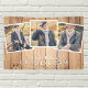 Composed of serif typography against a dark wood backdrop. These elements are modern country rustic. Add three custom photos.