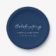 Celebration of Life Elegant Script Funeral Blue Paper Plate
