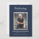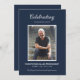 A celebration of life invitation features a photo of your loved one, their name, and details on the front on a navy blue background and the invitation to your celebration on the back. Order PRINTED and or INSTANT DOWNLOAD to send digitally or print yourself. MATCHING items in our collection.