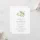 Elegant celebration of a life invitation features a spray of white roses and green foliage and leaves at the top. The deceased person's name is written in a traditional script text. All of the text can be easily edited to create a personal remembrance.