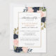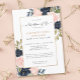 Celebration of life funeral memorial invitation featuring pink blush and navy blue floral botanical watercolor. Easily personalise this template for your loved one.