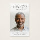 Keep the memory of a loved one close with this custom personalized prayer card featuring one treasured photo, the title CELEBRATION OF LIFE, name and dates on the front and an editable religious poem or bible verse or your heartfelt remembrance message accented with a simple cross on the back. With its simple, classic black and white design and elegant, modern script typography, it makes a meaningful keepsake to share at a Celebration of Life, funeral, memorial service, visitation or wake and offers comfort and a lasting tribute for family and friends. Its small and portable size of 3.5x2" (wallet-sized) makes it convenient for loved ones to carry it with them as a reminder of your loved one’s life and spirit. Personalization makes each card unique.