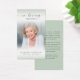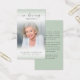 Keep the memory of your loved one close with this personalized prayer card featuring a beloved photo, the sentiment IN LOVING MEMORY, name and dates and an editable heartfelt remembrance message your can change to a meaningful poem, prayer, bible verse or quote. With its simple yet elegant design and modern script typography on your choice of background color (shown in sage green), it makes a cherished keepsake to share at a funeral, memorial service, visitation, wake or Celebration of Life and offers comfort and a lasting tribute for family and friends. Its small and portable size of 3.5x2" (wallet-sized) makes it convenient for loved ones to carry it with them as a reminder of your loved one’s life and spirit.