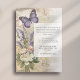Elegant "Celebration of Life" Invitation featuring a serene vintage background of handwritten letters, a soft watercolor bridge scene, and delicate floral details with lavender sprigs, ivory peonies, and a graceful purple butterfly.