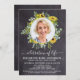 Modern Sunflower & Eucalyptus Memorial Funeral / Celebration Of Life Invitation. These sympathy funeral invitations feature a photo in a sunflower and eucalyptus wreath design on rustic chalkboard slate. Personalise this celebration of life funeral invitation with your loved ones photos, name & dates, event details. COPYRIGHT © 2021 Judy Burrows, Black Dog Art - All Rights Reserved. Celebration Of Life Sunflower Eucalyptus Photo Invitation