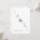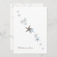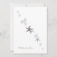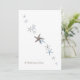 Starfish beach wedding invitations. A line of blue, white and brown sea stars decorates the front of this vertical, 5x7 inch, beach themed invitation. Brown text is in template form to easily customise on the front and back.