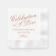 Formal terracotta orange wedding "Celebration of love" napkin design features beautiful typography that combines a traditional flourished calligraphy script with classic block lettering. The custom monogram text can be personalized with the bride and groom names and wedding date. Includes a decorative scroll accent. Please shop our Classic Elegant Terracotta Orange Wedding Collection for coordinating designs.