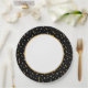 An Elegant Black And Gold Confetti Paper Party Plate