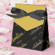 Black favour box with shades of gold Celebration in a decorative script font with glyph in different sizes. The front «lid» is in solid golden so the black ribbon showes. This favorbox and design are versatile and goes for most occasions and theme; birthday, Wedding, anniversary, Holiday and more. The Classic design in monochrome colours makes it elegant and modern.