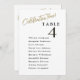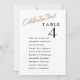 Celebration Time! in stylish script to assist your guests find their table with these elegant modern seating plan cards with guests names. Double sided cards so guests can look from both, front or back for their names. White background and black text, and table number with a drop shadow for effect. Several colour options. Have all table numbers in same colour or mix colours according to your event's colour theme. The card prints on the front and back (double-sided). If you have any design questions, just send a chat and we'll be delighted to assist.