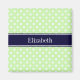 Celery and White Polka Dots Navy Name Monogram Magnet
