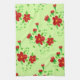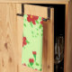 Kitchen or bath hand towel in light celery green background, and red floral art pattern. Fresh and crisp kitchen or bath design.