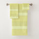 Pleasing shades of celery and celadon towel set has a matching shower curtain and plush bath mat.