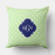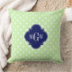 Celery Polka Dot Navy Blue Quatrefoil 3 Monogram Cushion