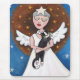 Mousepad featuring a beautiful angel with stars in her hair and her precious black and white cat. Created from an original painting © 2009 Lisa Marie Robinson