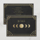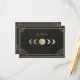 An elegant Art Deco wedding details card featuring celestial moon‑phase artwork, geometric gold accents, and a refined black backdrop. Perfect for stylish, modern weddings seeking a luxurious vintage aesthetic with clear, beautifully presented event information. Note: not real gold or foil.