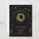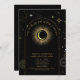 Celestial mystical personalised wedding invitation featuring arch frame with galaxy milky way midnight sky, star dust, crescent moon and other astrological symbols in black and golden colours and written quote "CAUSE IN THE SKY FULL OF STARS I SAW YOU". This card is easily editable. If you need help with the customisation of this card or you need more matching products for this collection kindly message me via Zazzle.