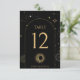 Celestial mystical personalised wedding table number featuring arch frame with galaxy milky way midnight sky, star dust, crescent moon and other astrological symbols in black and golden colours. This table number is easily editable. If you need help with the customisation of this product or you need more matching products for this collection kindly message me via Zazzle.