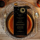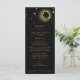 Celestial mystical personalised wedding menu card featuring galaxy milky way midnight sky with star dust, crescent moon and other astrological symbols in black and golden colours. This card is easily editable. If you need help with the customisation of this card or you need more matching products for this collection kindly message me via Zazzle.
