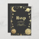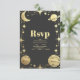 Celestial Black Gold Crescent Moon Wedding RSVP Card