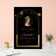 Celestial Black Gold Photo Birthday Quinceanera Acrylic Sign features an elegant gold sun, moon and stars frame surrounding your favourite photo with custom Quinceanera welcome sign information below. Personalise by editing the text in the text boxes and adding your favourite photo. Designed for you by ©2024 Evco Studio www.zazzle.com/store/evcostudio