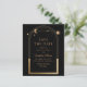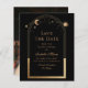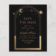 Celestial Black Save The Date Birthday Quinceanera Invitation features a gold sun, moon and stars frame on a black background. Inside is your custom Quinceanera save the date information and on the reverse add your favourite photo. Personalise by editing the text in the text boxes. Designed for you by ©2024 Evco Studio www.zazzle.com/store/evcostudio